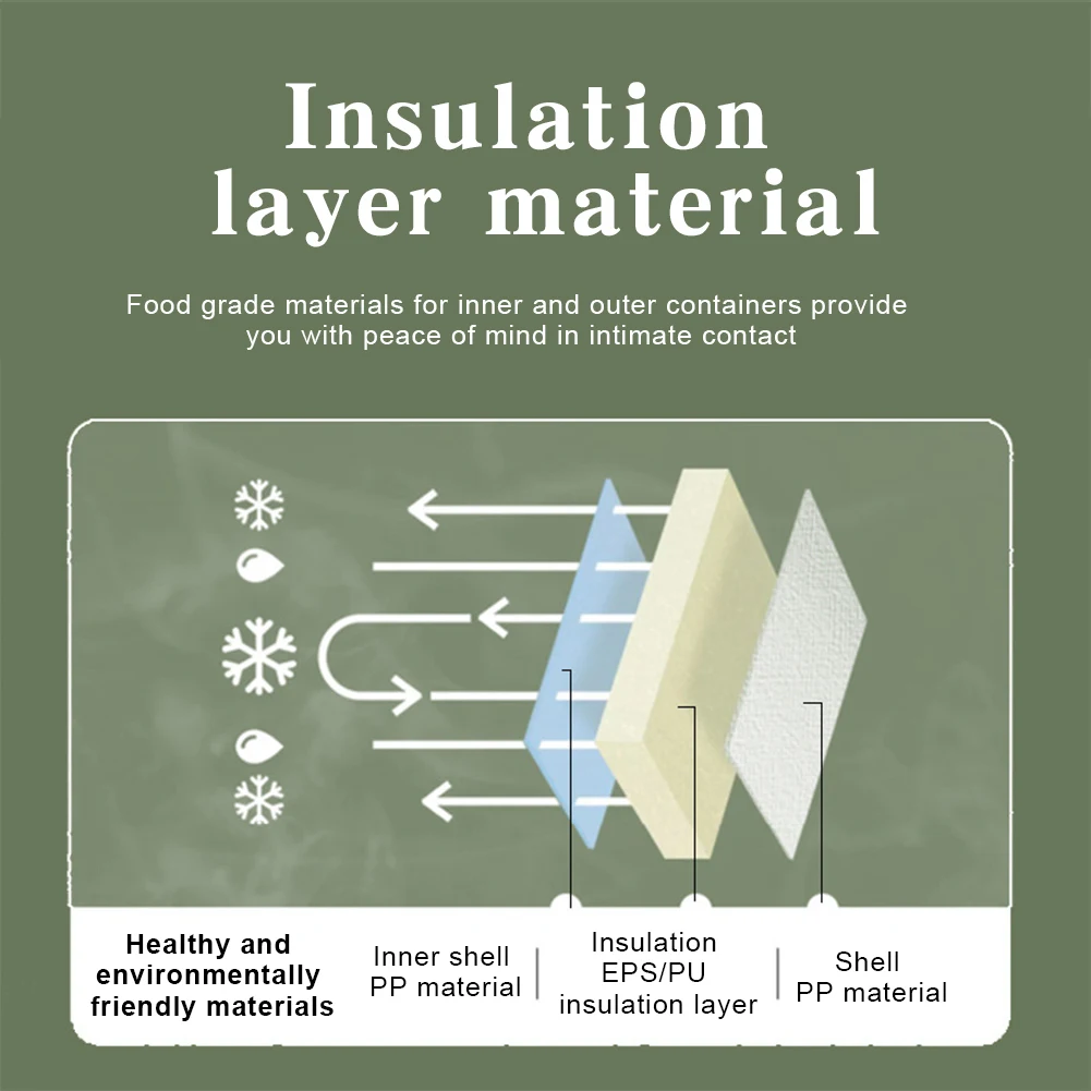 Material: PP Outer Shell + PU Insulation Layer + Liner